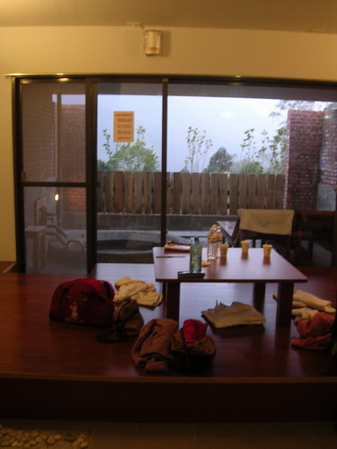 我們笑著想像隔壁五個男生進入浴池的情景...